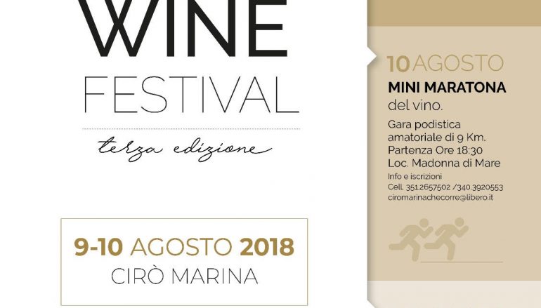 Il 10 Agosto invece, si svolgerà la mini Maratona del Vino, una gara podistica amatoriale, organizzata insieme all’associazione “Cirò Marina che corre”. Lo scopo è quello di promuovere il vivere sano ma anche e soprattutto di promuovere l’esperienza del territorio a passo d’uomo. Questo al fine di cogliere appieno la bellezza, i dettagli e la ricchezza di diversità.