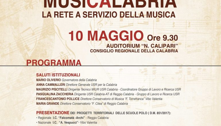 MusiCalabria: la rete a servizio della musica: in calendario giovedì 10 maggio 2018 alle 9.30, a Reggio Calabria nell’Auditorium Nicola Calipari presso il Consiglio Regionale.
