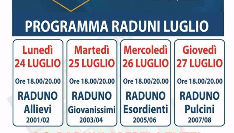 Cantieri sempre aperti allo Sporting Club Corigliano per nuovi stage selettivi in chiave under. Previsti nellultima settimana di luglio, infatti, una serie di raduni selettivi in vista della stagione 2017- 2018. La scuola calcio dèlite coriglianese biancoverde, affiliata allAtalanta, ha fissato in agenda il primo raduno lunedì 24 luglio tra le 18:00 e le 20:00 per la categoria Allievi, il secondo per i Giovanissimi negli stessi orari è previsto per martedì 25 luglio, il terzo per mercoledì 26 luglio sempre dalle 18:00 alle 20:00 per gli Esordienti e per i Pulcini giovedì 27 luglio sempre negli stessi orari. Stage che si terrà sotto la visione dello staff tecnico dello Sporting di patron Fino che vaglierà tutti i giovani calciatori che si presenteranno agli incontri per allestire gli organici della prossima stagione federale. Frattanto, qualche calciatore cresciuto nel settore giovanile dello Sporting, potrebbe accasarsi in queste settimane in qualche club tra professionisti o dilettanti. Come ogni estate si attendono novità ufficiali per tracciare anche la lista delle giovani promesse bianco verdi, seguite durante i campionati da diversi osservatori, e pronti nel proseguire la propria crescita sportiva in altre realtà.