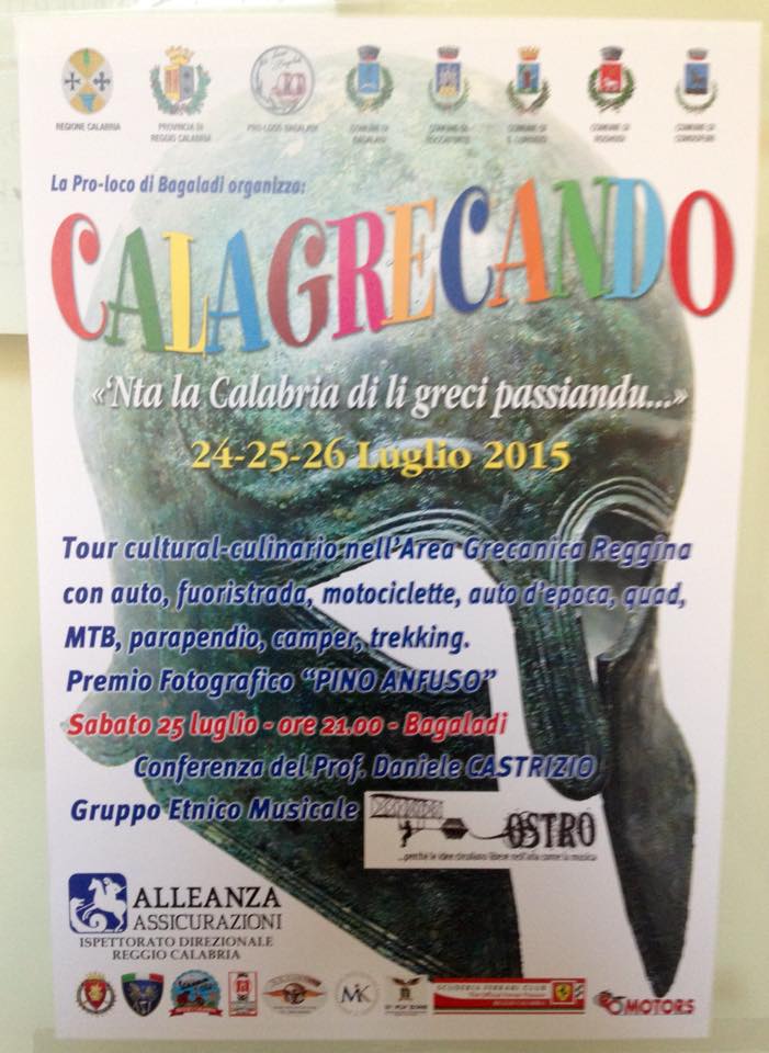 Martedì 7 Luglio alle ore 18:00 si è tenuta la conferenza stampa di presentazione del Tour “Calagrecando”, organizzata dalla Pro Loco Bagaladi con la collaborazione delle Amministrazioni Comunali di Bagaladi, Condofuri, Roccaforte del Greco, Roghudi e San Lorenzo.