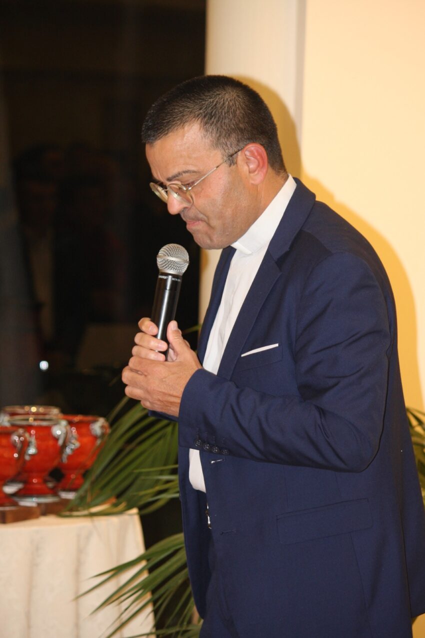 Subito dopo aver ricevuto il premio dalle mani di Tomarchio e Dominga Pizzi, che don Giovanni Zampaglione ha dedicato alla sua amata terra (Masella), ha voluto anche lui premiare Tomarchio per l’impegno profuso e la visibilità che dà a tutto il territorio di Montebello. Prima di proseguire con la premiazione, la presentatrice Dominga Pizzi ha chiesto a don Giovanni Zampaglione una preghiera per la pace. Il parroco, prima dell’inizio delle premiazioni ha voluto, altresì, rallegrare la serata con alcuni canzoni di diversi artisti famosi, poichè appassionato di canto.