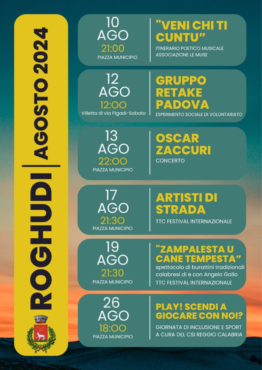 Questo ricco programma estivo conferma Roghudi come un centro di cultura e socialità, capace di offrire eventi che rispecchiano la tradizione locale e, allo stesso tempo, accolgono influenze e talenti internazionali. Non resta che partecipare e lasciarsi coinvolgere dall’energia di queste serate estive!