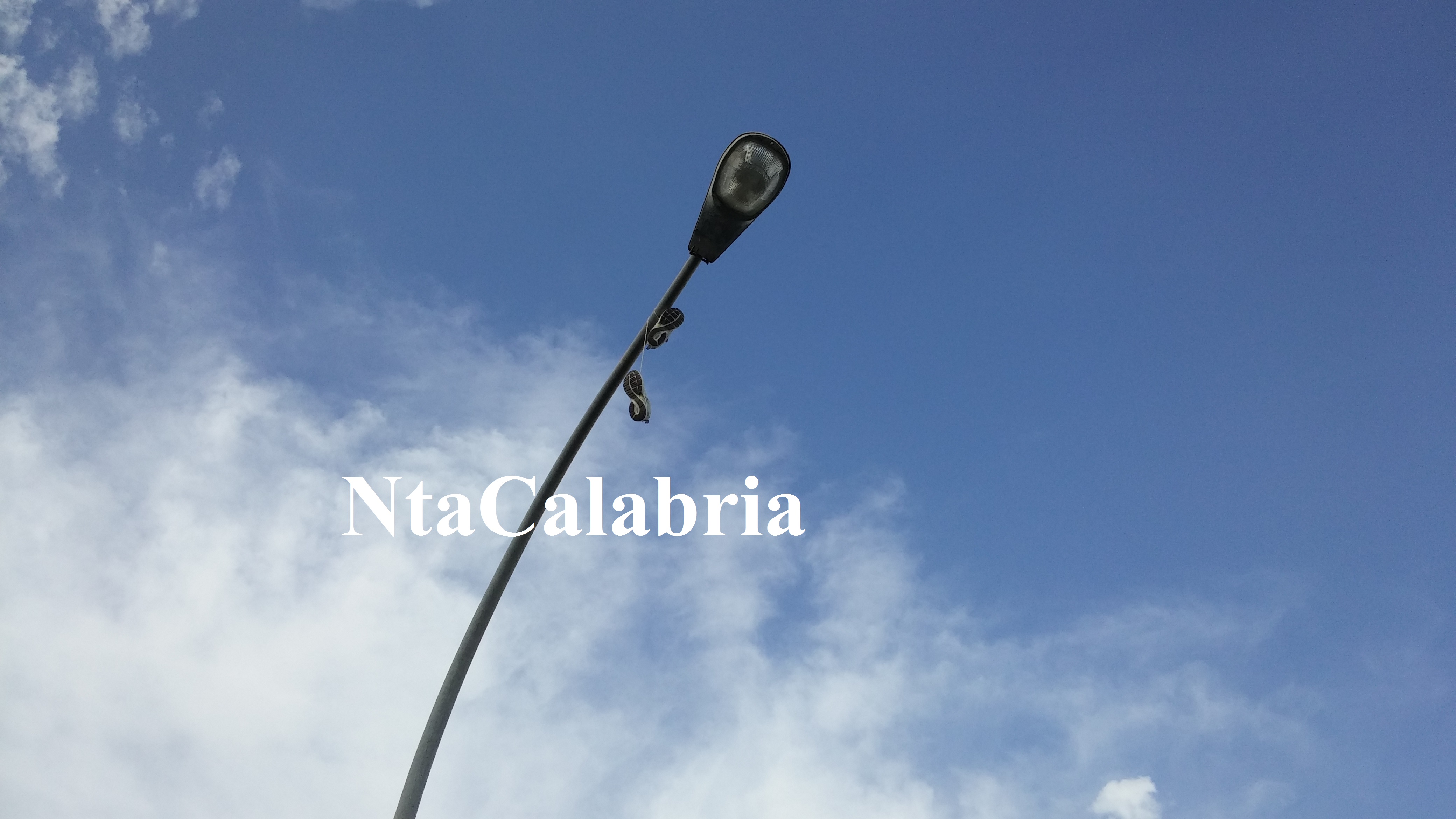 Su un palo della luce ci sono due scarpe da tennis legate con i lacci.