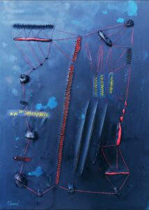 In realtà, le sue sono cuciture di “suturazione mediatica” con l’ausilio della convenzionale “saturazione cromatica”. E’ una quasi ricerca costante di un deterrente per sconfiggere i mali della società: cucire per ottenere un legame riconciliatorio tra l’uomo e la società stessa. Uno degli elementi distintivi del suo lavoro è proprio l’uso di cuciture e tagli che ricordano l’operato di A. Burri e M. Rothko nel cromatismo, fino ai tagli di L. Fontana e ai giochi fantastici di G. Capogrossi. Francesco è ormai noto per creare opere che sembrano “cicatrici” sulla superficie della tela, spesso applicando stracci e altri materiali cuciti, bruciati o tagliati. Questo processo creativo aggiunge una dimensione tattile e tridimensionale alle sue opere, rompendo la tradizionale bidimensionalità della pittura.