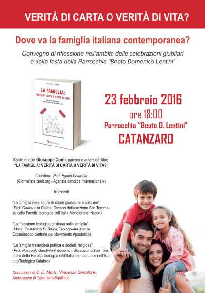 Il libro verrà presentato giorno 23 febbraio p.v. alle 18.00 presso la parrocchia Beato Domenico Lentini in Catanzaro. I relatori saranno: prof. Gaetano di Palma, Decano della sezione San Tommaso della Facoltà teologica dell’Italia meridionale, Napoli; prof. Pasquale Giustiniani, Docente nella sezione San Tommaso della Facoltà Teologica dell’Italia Meridionale (Napoli) e nell’Istituto Teologico Calabro (Catanzaro); Mons. Costantino Di Bruno, Teologo-Assistente Ecclesiastico Centrale del Movimento Apostolico; S. E. Mons. Vincenzo Bertolone, Arcivescovo Metropolita di Catanzaro-Squillace. Modererà la serata il prof. Egidio Chiarella, giornalista di zenit.org – agenzia cattolica internazionale.