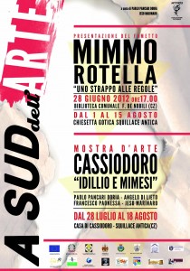 L’Associazione artistica culturale Mythos, in collaborazione con l’Assessorato alla Cultura della Regione Calabria, la Rondine Edizioni ed i Comuni di Catanzaro e Squillace, promuove l’evento “A Sud dell’arte” in occasione del quale sarà presentato il fumetto “Mimmo Rotella uno strappo alle regole” e la mostra d’arte “Cassiodoro idillio e mimesi”. I dettagli dell’evento saranno illustrati in occasione della conferenza stampa che si terrà ogg, martedì 26 Giugno, alle ore 11,00, presso la Sala Concerti del Comune di Catanzaro.