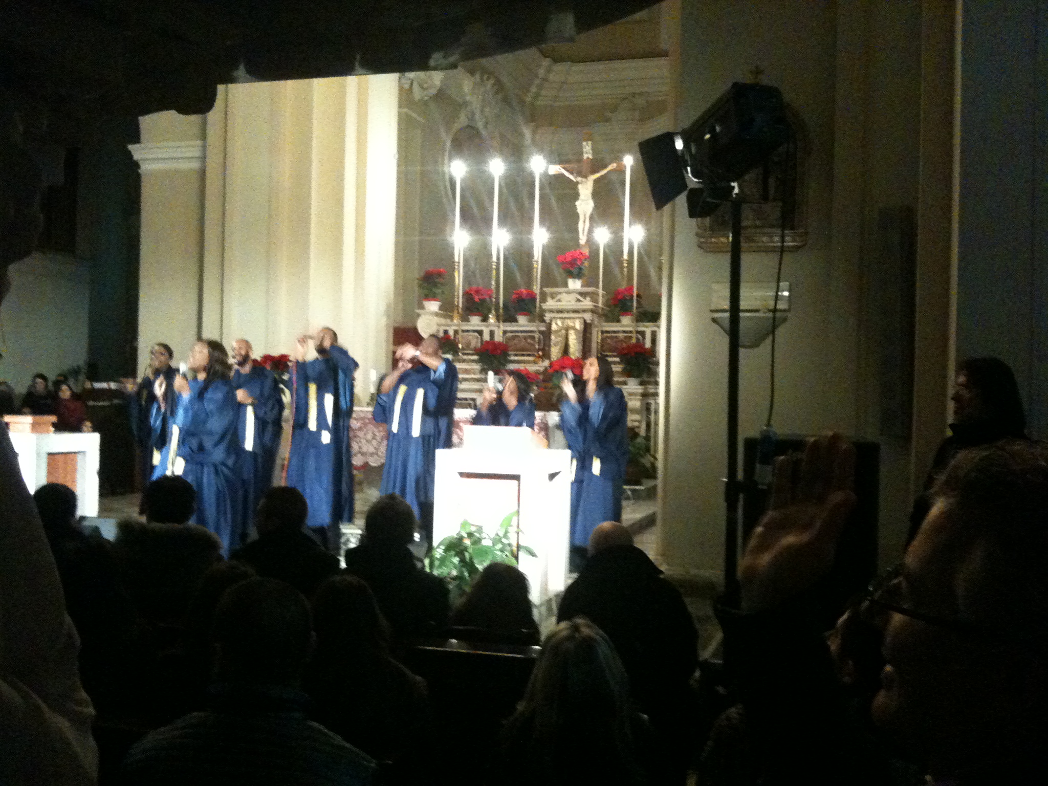 Ancora un grande serata di musica proposta da AMA Calabria nell’ambito delle iniziative Natale 2011 promosse dall’Amministrazione Comunale di Lamezia Terme. Gli HAPPY DAY GOSPEL SINGERS riscuotono un vero e proprio trionfo al loro concerto di Santo Stefano tenuto nella Chiesa Matrice di Sambiase stracolma di pubblico che ha tributato una lunga standing ovation agli artisti di Dallas che hanno dato il meglio di sé evidenziando qualità vocali ed interpretative di primissimo ordine.
