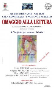 E’ previsto, infatti, un incontro con Marlisa Albamonte autrice del romanzo L’ho fatto per amore. Giulia (Edizioni Orizzonti Meridionali).