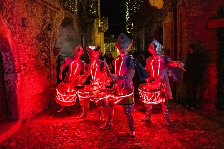 Il Borgo Incantato Winter Edition ha visto esibirsi artisti di calibro internazionale in rappresentanza di ben 4 nazioni (Italia, Cile, Francia e USA) nell’incanto del centro storico della cittadina della Locride, uno dei Borghi più Belli d’Italia e Comune Bandiera Arancione del Touring Club Italiano, reso ancora più suggestivo dalle luci e dai colori del Natale. Babbo Natale ed i suoi elfi hanno stupito i più piccoli con The Merry Christmas Parade, una sfilata divertente e giocosa, i percussionisti Moz Drums hanno coinvolto il pubblico con i loro ritmi vivaci fatti anche di luci ed effetti speciali, The Big Violinist ha incantato con il suo repertorio suonando a 5 metri di altezza, il Duo Tobarich e Mistral hanno portato in scena show di forza, concentrazione ed eleganza artistica, la musica d’autore degli Assurd e il fascino gospel dei The Gospel Soul Notes hanno ammaliato le notti di Gerace regalando emozioni a fior di pelle mentre i Giochi di una Volta di Caimercati hanno rafforzato il legame tra bambini e adulti stimolando la fantasia, la cooperazione e le abilità.