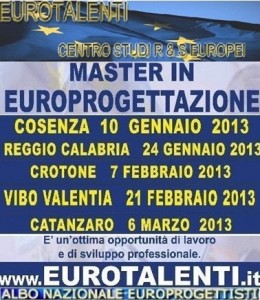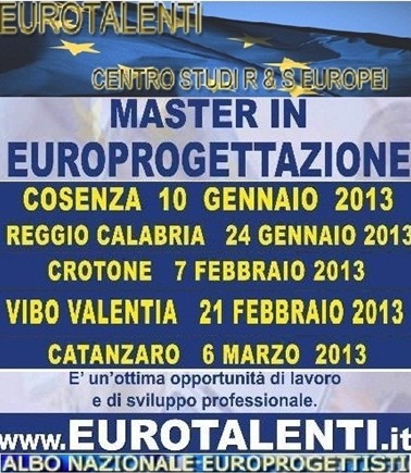 Dopo il successo delle precedenti edizioni si svolgerà in Calabria – in tutte le cinque province – un’edizione speciale del Master in Europrogettazione, tenuto dall’ente formativo Centro studi R&S europei Eurotalenti.