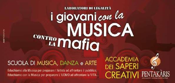 “Educhiamo alla musica per preparare l’artista ad affrontare il pubblico, educhiamo con la musica per preparare l’uomo ad affrontare la vita”. Questo è il motto su cui l’Accademia dei Saperi Creativi della Pentakàris centra le sue attività didattiche e artistiche ed è anche il principio su cui basa il laboratorio di legalità programmato per il prossimo venerdì.