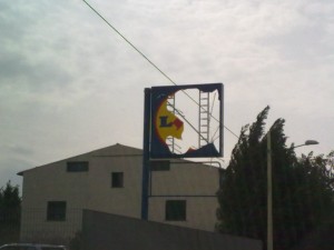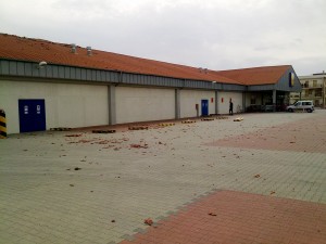 Il vento forte che spira da stanotte ha provocato danni alla struttura del “Lidl”. Distrutta in parte l’insegna e anche la copertura esterna. Le tegole sono infatti cadute sul parcheggio, per fortuna al momento vuoto.