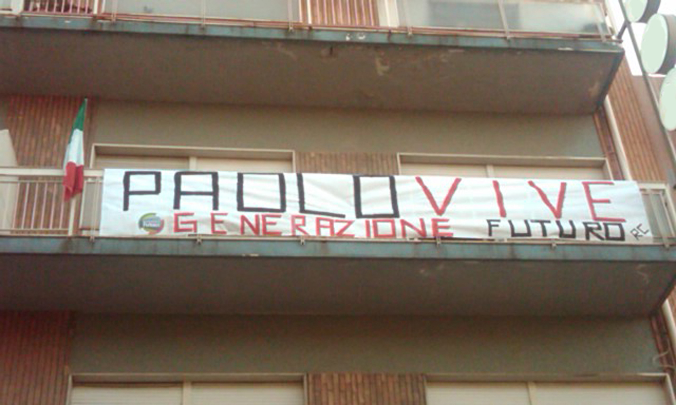 “PAOLO VIVE”. Questo è ciò che recita lo striscione realizzato da Generazione Futuro, movimento giovanile di Futuro e Libertà per L’Italia, al fine di commemorare l’anniversario della scomparsa del giudice Paolo Borsellino, assassinato, come tristemente noto, assieme alla sua scorta diciannove anni fa, un un’anonima, fin allora, via di Palermo.