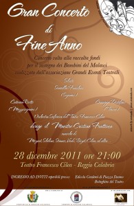 Mercoledì 28 dicembre 2011, alle ore 21, presso il Teatro Comunale Francesco Cilea di Reggio Calabria si svolgerà una manifestazione benefica a favore dei bambini del Malawi. Il progetto è in atto operativo a Magomero, un villaggio del Malawi nella diocesi di Zomba dove sono in costruzione un centro di accoglienza per neonati ed uno per bambini in età prescolare (inferiore a 5 anni) con finalità didattiche, ludiche e di assistenza sanitaria.