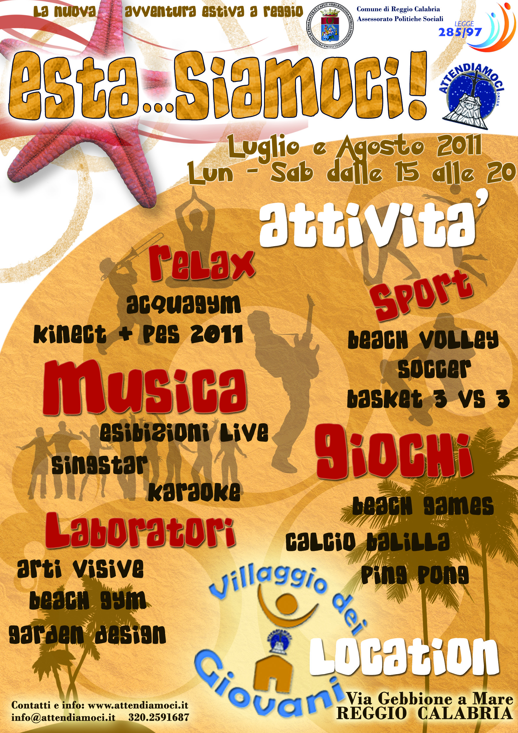 In questa calda estate il Villaggio dei Giovani (sito nei pressi della stazione O.ME.CA. di Reggio Calabria), bene confiscato alla mafia e gestito dall’Associazione Attendiamoci ONLUS, ospita il progetto “Esta…siamoci”, alla cui presentazione hanno partecipato il sindaco della città, Demetrio Arena, il governatore della Calabria, Giuseppe Scopelliti, e la dirigente del Settore Politiche Sociali del Comune di Reggio Calabria, Carmen Stracuzza.