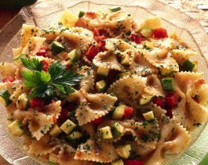 Lessare le farfalle il abbondante acqua salata, scolarla al dente, disporla nella casseruola con il condimento emischiare in modo che sia tutto ben insaporito. Portare a tavola e gustare.