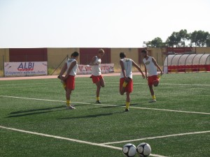 Duro lavoro per tutti sotto il caldo cocente di agosto, mentre la società attende ansiosa l’esito ufficiale dei ripescaggi che uscirà nella giornata di oggi (Giovedi ndr). Solo stretching ed esercizi mirati per Rino Azzinnari, che è riuscito a fare un recupero lampo contro ogni pronostico e dovrebbe essere a disposizione completa del mister già dalla prima giornata di campionato.