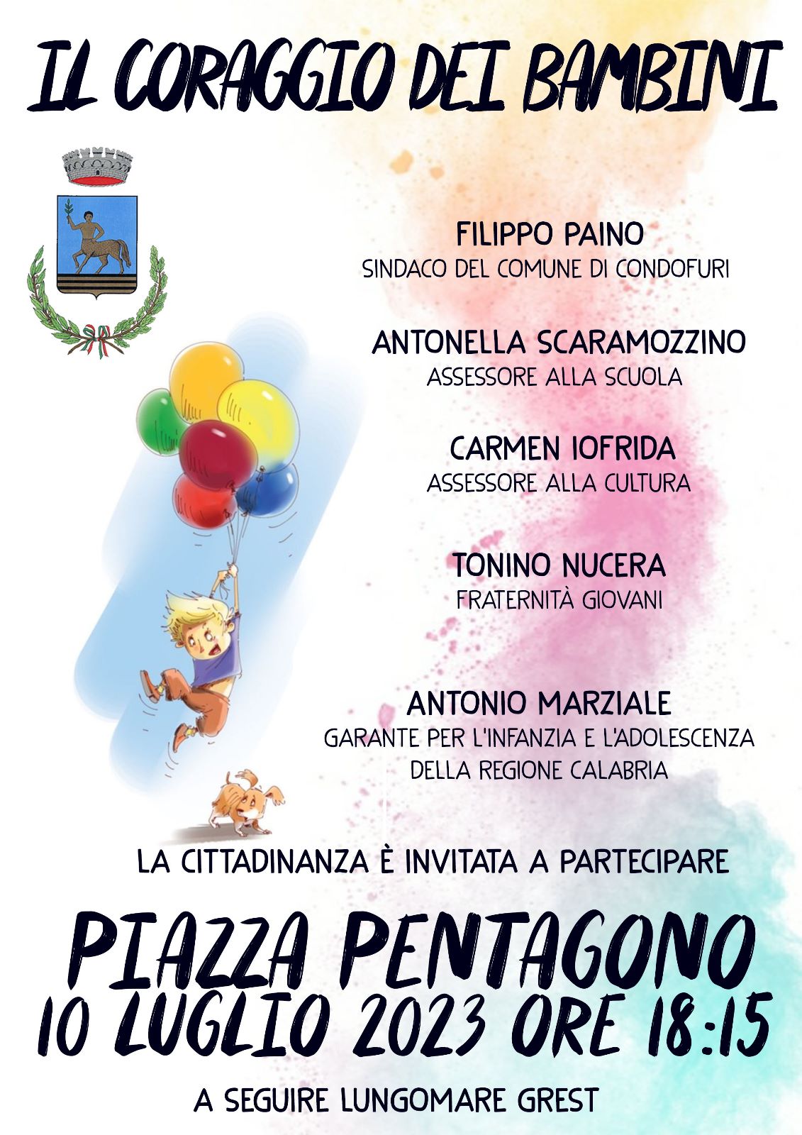 Nella Piazzetta Pentagono di Condofuri, il 10 luglio alle 18:15, in occasione della tappa sul lungomare del Grest, per celebrare il coraggio dei bambini, è stato organizzato un incontro dedicato ai nostri piccoli eroi.
