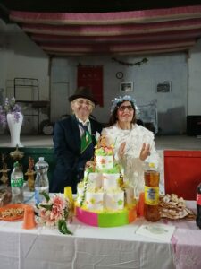 Il matrimonio si è svolto in Piazza, con tanto di serenata alla sposa ed a seguire il banchetto di Pulcinella con i dolci tipici del Carnevale, primi tra tutti le Chiacchiere, e ancora musica, balli e tanto divertimento. Gli sposi alla fine hanno salutato parenti ed amici, facendo visita insieme alle altre maschere ai nonni ospiti presso Casa Sebastiano Pezzimenti della Cooperativa Sant’Anna di Palizzi.
