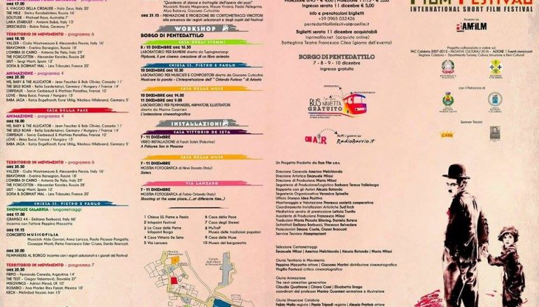 Tanti gli appuntamenti per la decima edizione che si susseguiranno nei giorni 7 – 8 – 9 – 10 e 11 dicembre nella splendida cornice del borgo antico di Pentedattilo e che giorno 7 dicembre e giorno 11 dicembre faranno tappa anche al Teatro “Cilea” di Reggio Calabria. Protagonista della manifestazione sarà l’arte in ogni sua forma: un lungo percorso di workshop cinematografici, installazioni e proiezioni che animeranno un ricco calendario di incontri.