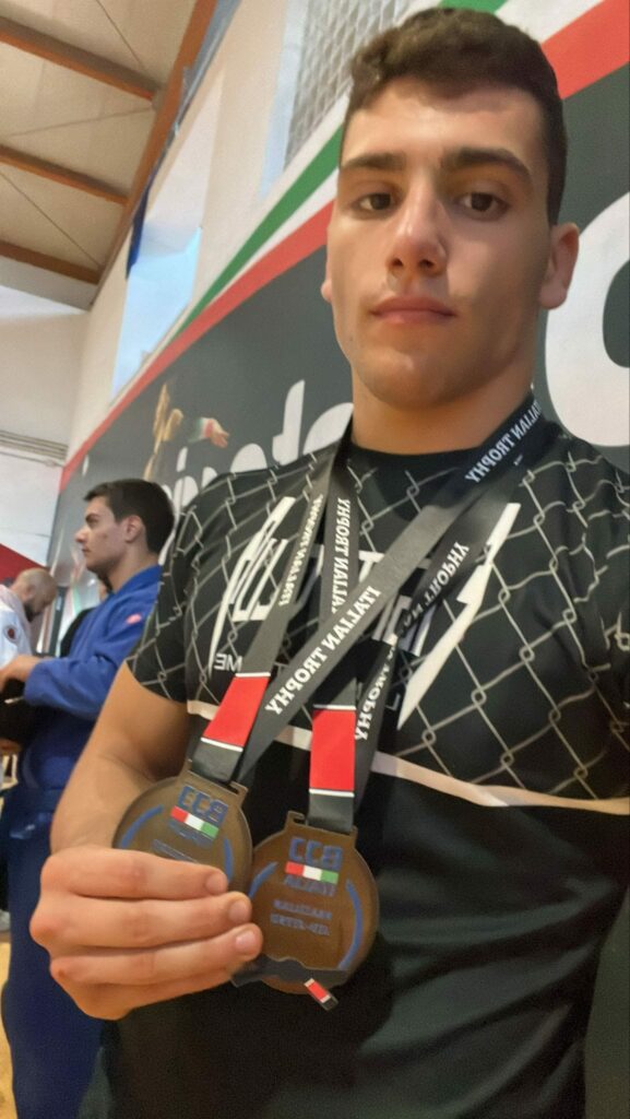 Questa volta si é trattato di due medaglie di bronzo nella categoria Bjj, lotta brasiliana, al suo debutto assoluto. Il campione é salito sul gradino piú basso del podio presso il PalaTorrino di Roma in occasione dell’Italian Trrophy BJJ di Roma competendo in una disciplina iniziata appena sette mesi.