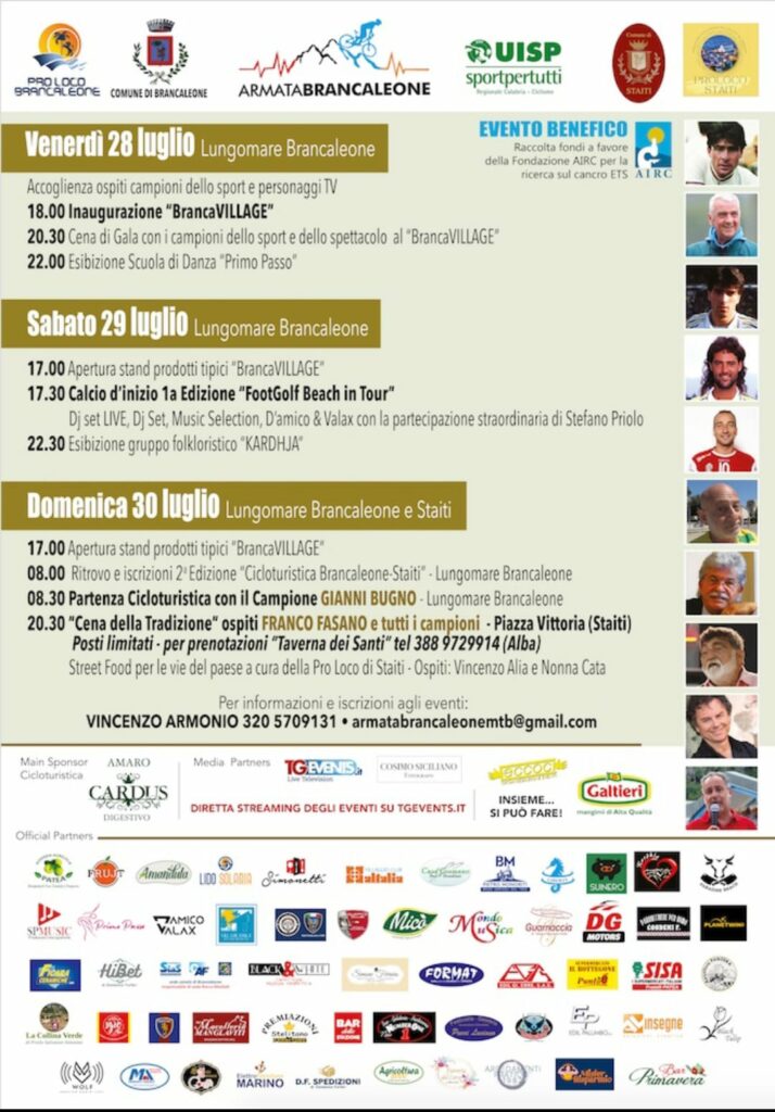 Brancaleone Marina ospita per la prima volta “FOOTGOLF Beach in Tour”. Tre giorni di eventi (28,29,30 luglio 2023) con la partecipazione di grandi campioni dello sport e personaggi della Tv come Evaristo Beccalossi, Gianni Bugno, Alessandro Melli, Marco Osio, Simone Rosalba, Andrea Bove, Antonio Razzi, Roberto Baffo da Crema, Franco Fasano, Milko Capraro e Luca Galtieri