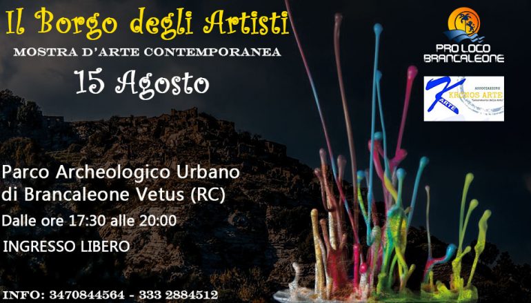 “Il borgo degli artisti”, una mostra d’arte contemporanea organizzata dalla Pro Loco di Brancaleone in collaborazione con Kronos Arte. Il pomeriggio di ferragosto si colorerà di arte nel borgo di Brancaleone Vetus con una ricca esposizione di quadri, sculture e installazioni. Saranno oltre 20 gli artisti provenienti dal territorio dell’area grecanica e locridea. Ancora una volta il borgo di Brancaleone diventa location ideale per un evento di grande spessore.