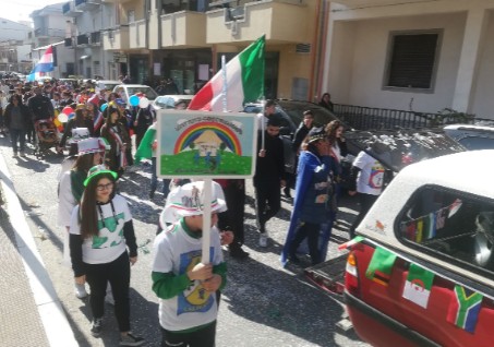 Il “Carnevale multietnico”, questa la tematica trattata quest’anno, ha visto sfilare tutti, bambini e ragazzi, mascherati dei costumi tipici dei vari paesi del mondo, seguiti dal Dirigente F. Praticò, ma anche dai docenti e dai genitori.