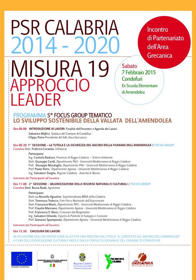 Il GAL Area Grecanica, nell’ ambito delle attività preparatorie per l’avvio del Programma di Sviluppo Rurale (PSR) 2014-2020 ed in coerenza con le previsioni contenute nella Scheda di Misura n. 19 – Approccio Leader, ha avviato nel mese di dicembre 2014 un percorso partenariale di ascolto del territorio finalizzato alla definizione degli Obiettivi, delle Strategie e delle Azioni per lo Sviluppo dell’Area Grecanica.