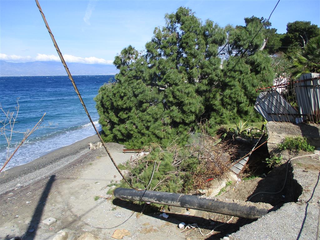 “Verosimilmente nella nottata tra martedì e mercoledì u.s., in località Bocale (RC), nel tratto costiero a pochi metri del lido “Sciao Beach”, ove le mareggiate continuano ad arrecare notevoli danni a strutture pubbliche e private, è crollato un maestoso albero e con esso alcune infrastrutture telefoniche e elettriche (pali di cemento dell’illuminazione pubblica e pali telecom con annessi cavi d’acciaio ed elettrici). L’erogazione di energia elettrica era stata disattivata qualche mese addietro. Si è sfiorata la tragedia.
