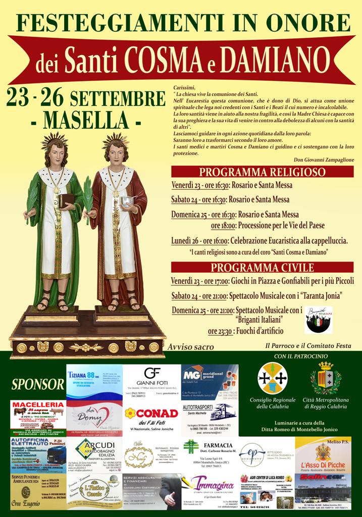La borgata di Masella, comune di Montebello Jonico, si accinge a vivere la festa dei Santi patroni Cosma e Damiano, guidata dal neo parroco don Giovanni Zampaglione.