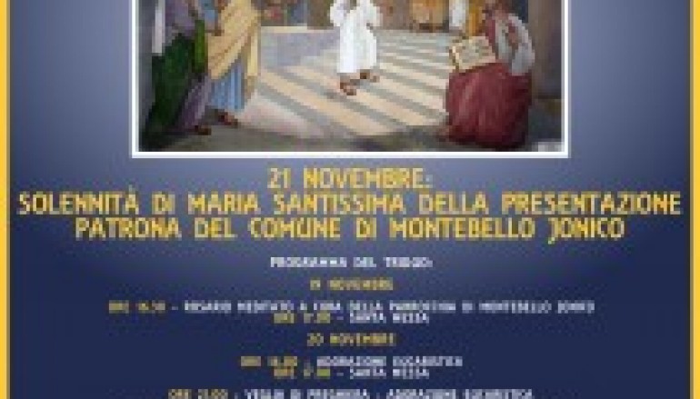 Partono oggi i festeggiamenti a Montebello Jonico in onore alla Madonna della Presentazione.