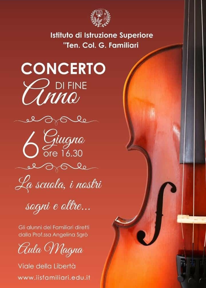 L’Istituto di Istruzione Superiore “Ten. Col. G. Familiari” è pronto a concludere l’anno scolastico in grande stile con il tradizionale Concerto di Fine Anno, un evento che rappresenta un momento di festa, condivisione e celebrazione dei successi raggiunti.