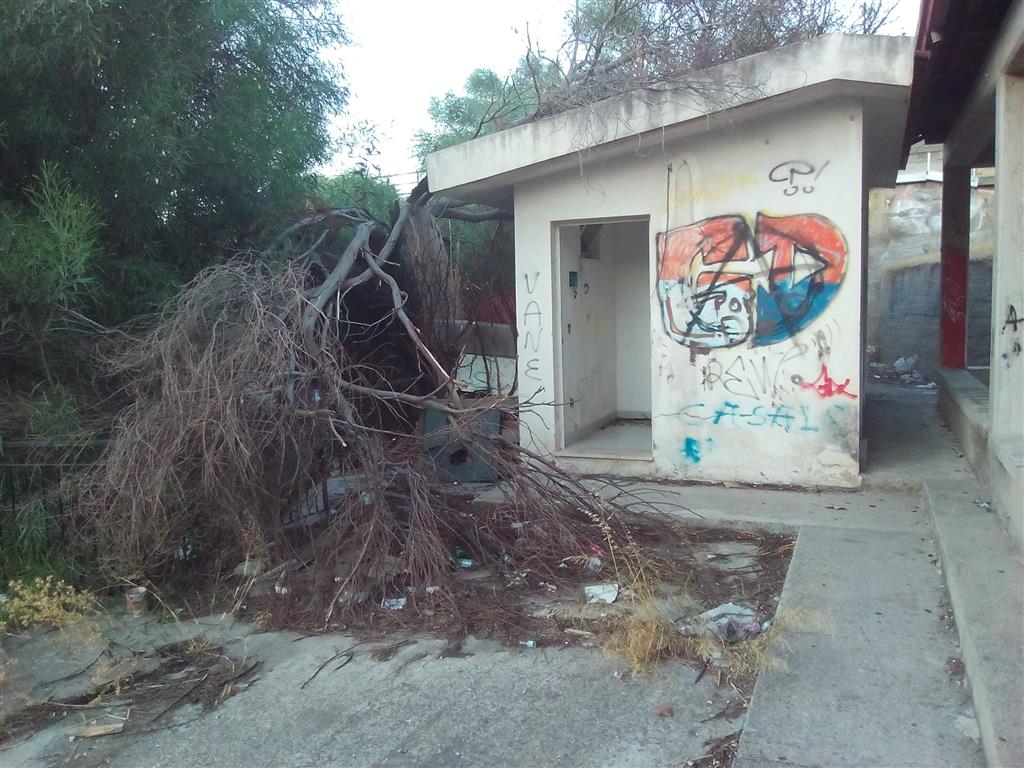 Come anzi detto l’area esterna della struttura è stata trasformata in deposito incontrollato di rifiuti di diversa tipologia, habitat ideale per la proliferazioni di animali, topo, gatti, serpi, ecc. Tra i rifiuti è stata collocata una fontana mobile la cui tubazione e l’annesso rubinetto di erogazioni giacciono per terra e in mezzo alle acque che si raccolgono nella piazza durante le piogge. Non mi ci venga a dire che non ci sono risorse per pulire e mettere una porta. Un ulteriore potenziale pericolo si è registrato a seguito del crollo di un albero posto a ridosso dei locali adibiti a bagno, mentre altri rami propendono nel sottostante torrente della Saitta, di fatto trasformato in strada pubblica, denominata via “Salvidieno Ruffo” (generale).