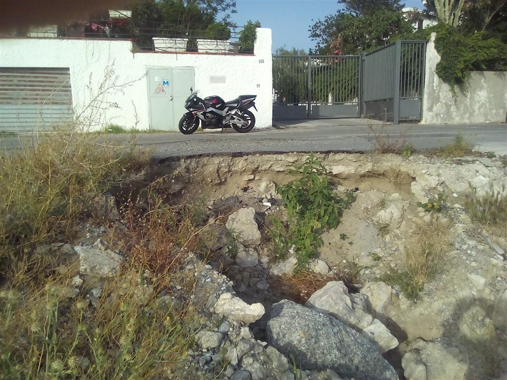 Il crollo ha interessato una porzione di strada lato mare e non si è provveduto nemmeno a mettere in sicurezza la voragine che è divenuta una insidia per la circolazione veicolare e pedonale in quanto non è prontamente avvistabile anche per la presenza di vegetazione spontanea lungo il tratto. La situazione diventa più pericolosa col buio. Mi domando dove siano i nostri amministratori e chi è preposto al controllo del territorio, il cui silenzio fa legittimamente ritenere che in quel tratto di strada negli ultimi due anni non sono mai passati. I lavori di scavo già oggetto di segnalazione a pochi metri della casa Attinà, ove le mareggiate avevano provocato il cedimento di una porzione di strada, sono ancora fermi e in mancanza del prescritto cartello di cantiere non si conoscono le opere che si intendono realizzare né la ditta esecutrice dei lavori.