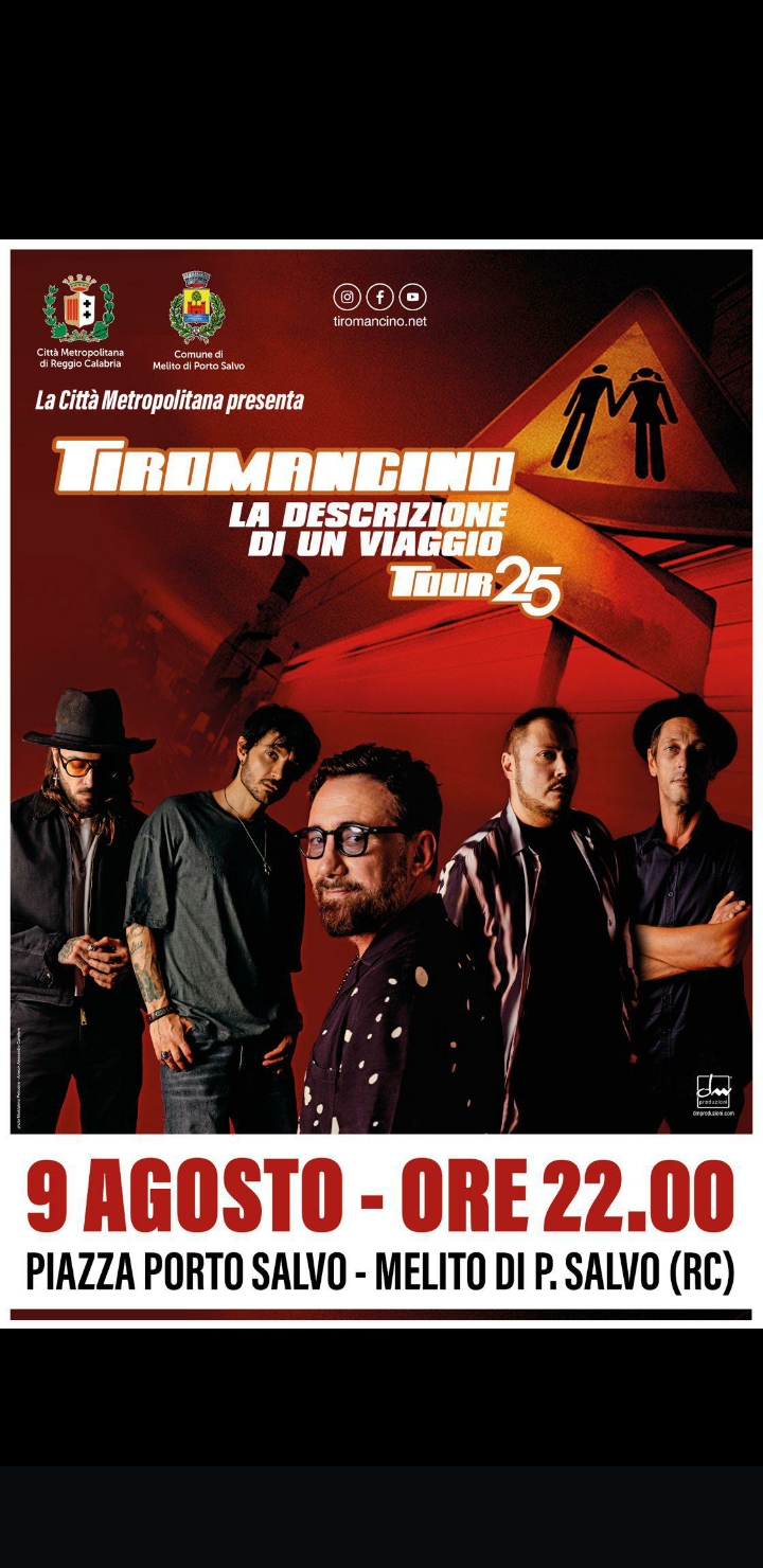 I Tiromancino, tra le band più amate della scena musicale italiana, faranno rivivere brani che hanno segnato un’epoca — da Due destini a Per me è importante, fino alle hit più recenti — in un viaggio musicale capace di intrecciare emozioni, ricordi e nuove vibrazioni. Sullo sfondo, l’atmosfera unica di Melito di Porto Salvo, porta estrema della Calabria sul Mar Ionio, pronta ad accogliere migliaia di spettatori provenienti da tutta la regione e non solo.