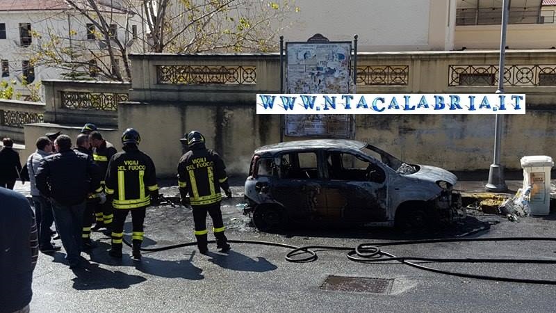 Davanti la Chiesa dell’Immacolata, un’auto è stata interamente distrutta dalle fiamme.