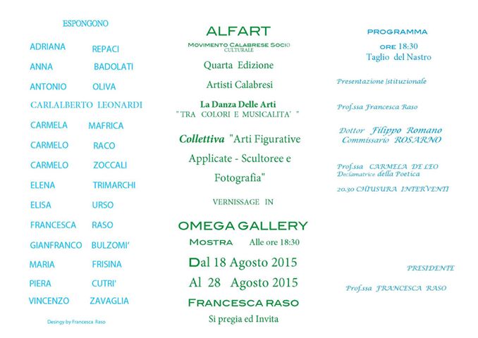 L’evento è stato organizzato dalla prof.ssa Francesca Raso, Presidente di “ALFART MOVIMENTO CALABRESE SOCIO CULTURALE “, ed è giunto alla quarta edizione.