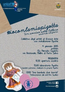 Gli artisti di Kronos Arte, diretti dal presidente Carmela Mafrica, hanno creato un laboratorio di istallazione dove vengono realizzate le pigotte e si suddivide in due parti. Ognuno presenterà 4 tele o sculture e una cornice dove verrà inserita la pigotta d’artista personalizzata, seguirà la seconda parte in cui gli artisti insieme a 5 bambini ,che hanno intenzione di adottare una pigotta, potranno scegliere e comporre la proprio bambola.