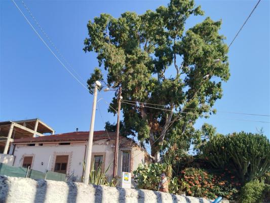 L’albero in questione ha rami che ondeggiano pericolosamente sopra la circolazione stradale, abitazioni e infrastrutture sottostanti.