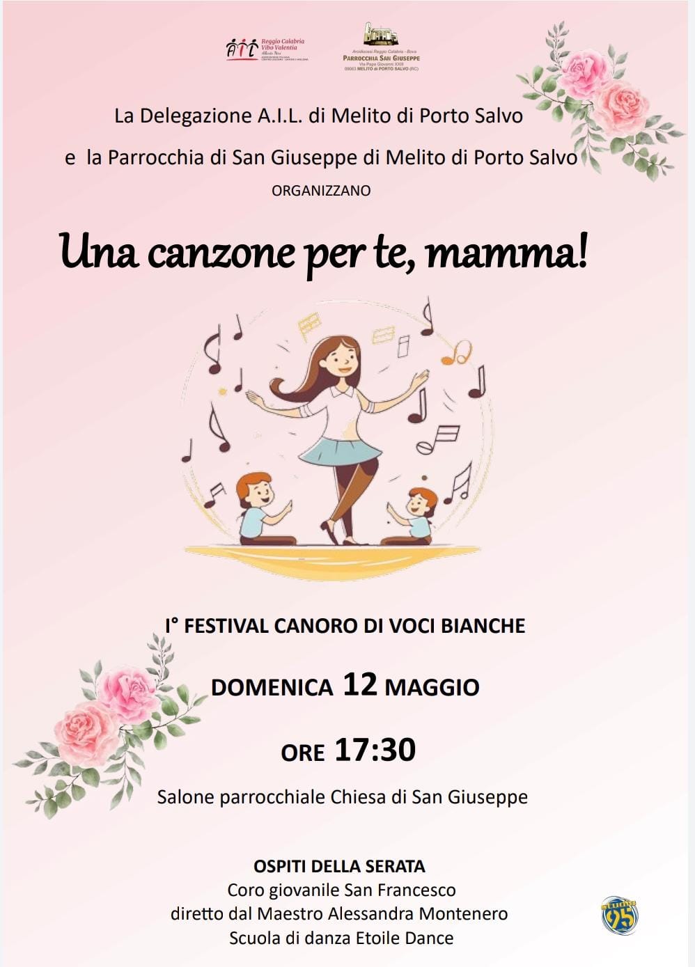 Domenica 12 maggio, il salone parrocchiale di San Giuseppe a Melito di Porto Salvo sarà il fulcro di un evento unico, pensato per celebrare la bellezza e l’amore delle mamme attraverso la musica. Organizzato con cura e dedizione dalla delegazione AIL di Melito, in collaborazione con la parrocchia di San Giuseppe, il Primo Festival Canoro “Una Canzone per te mamma” promette un’esperienza indimenticabile per le famiglie della comunità.