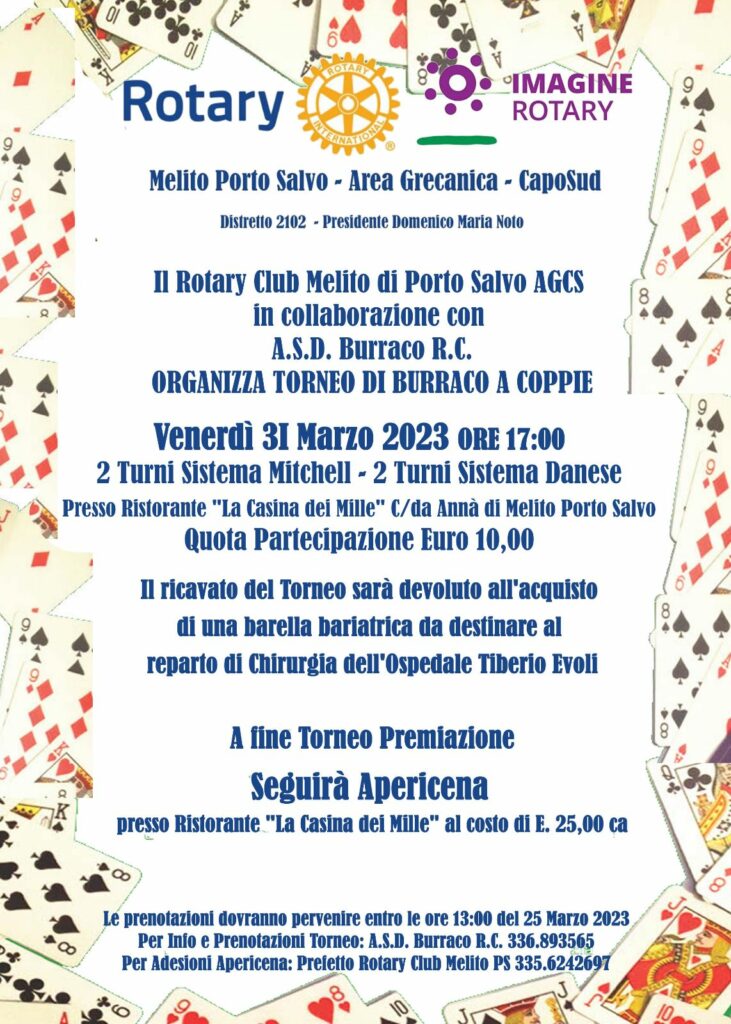 Torneo di Burraco a Coppie a Melito Porto Salvo organizzato dal Rotary Club Melito di Porto Salvo AGCS in collaborazione con A.S.D. Burraco R.C.