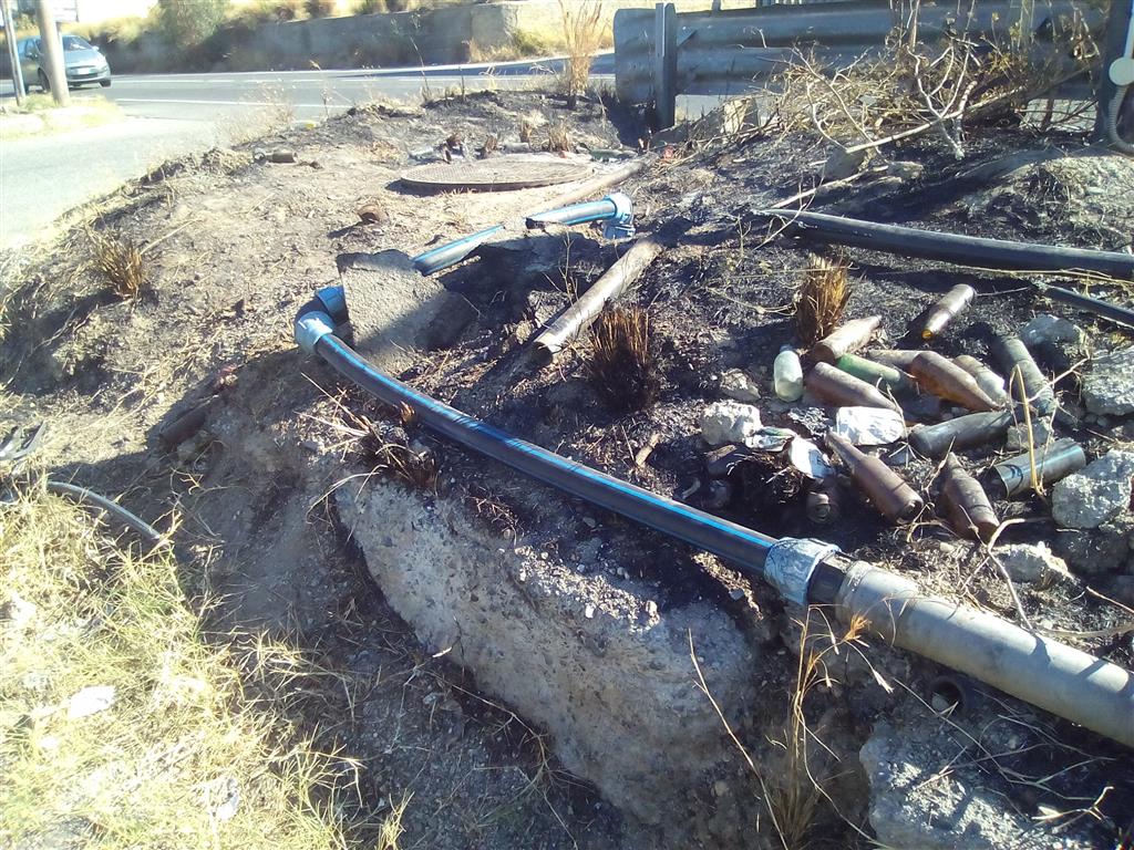 Nella stessa mattinata evidenziavo alle citate strutture comunali la necessità di intervenire con urgenza per ripristinare il servizio atteso che numerose famiglie (sembrerebbe circa 80) di un complesso residenziale risultavano senza acqua e sottolineavo la necessità di interessare il competente Organo sanitario acchè provvedesse ad eseguire delle analisi su campioni di acqua al fine di escludere possibili contaminazioni, visto, soprattutto, che le condotte idriche bruciate sarebbero in polietilene e mettere in sicurezza la tubazione volante collocata tra sterpaglie e rifiuti.