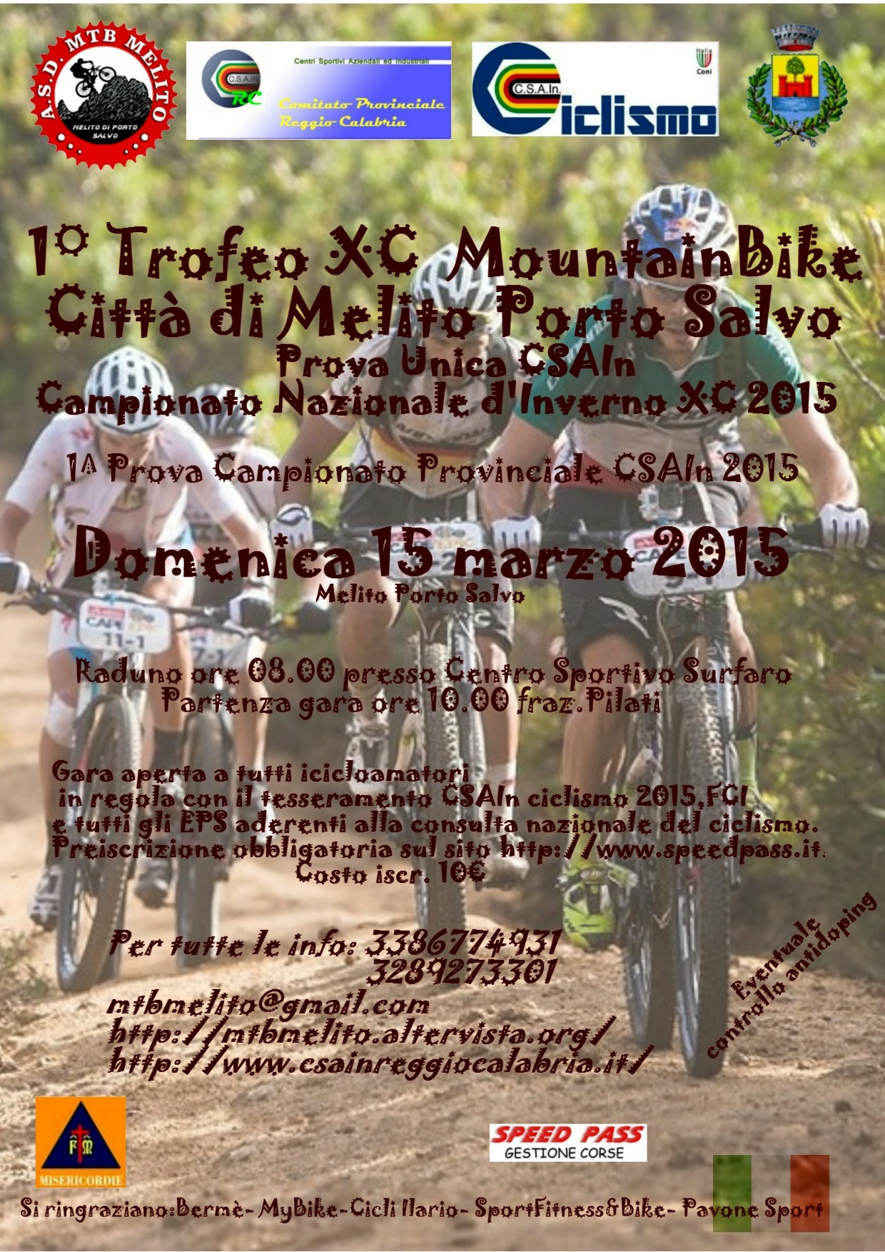 La prova unica, sarà aperta a tutti i cicloamatori tesserati CSA In ciclismo 2015, FCI ed enti di promozione sportiva aderenti alla consulta nazionale ciclismo in regola con il tesseramento 2015, valevole anche come prima prova del campionato xc csain RC 2015.