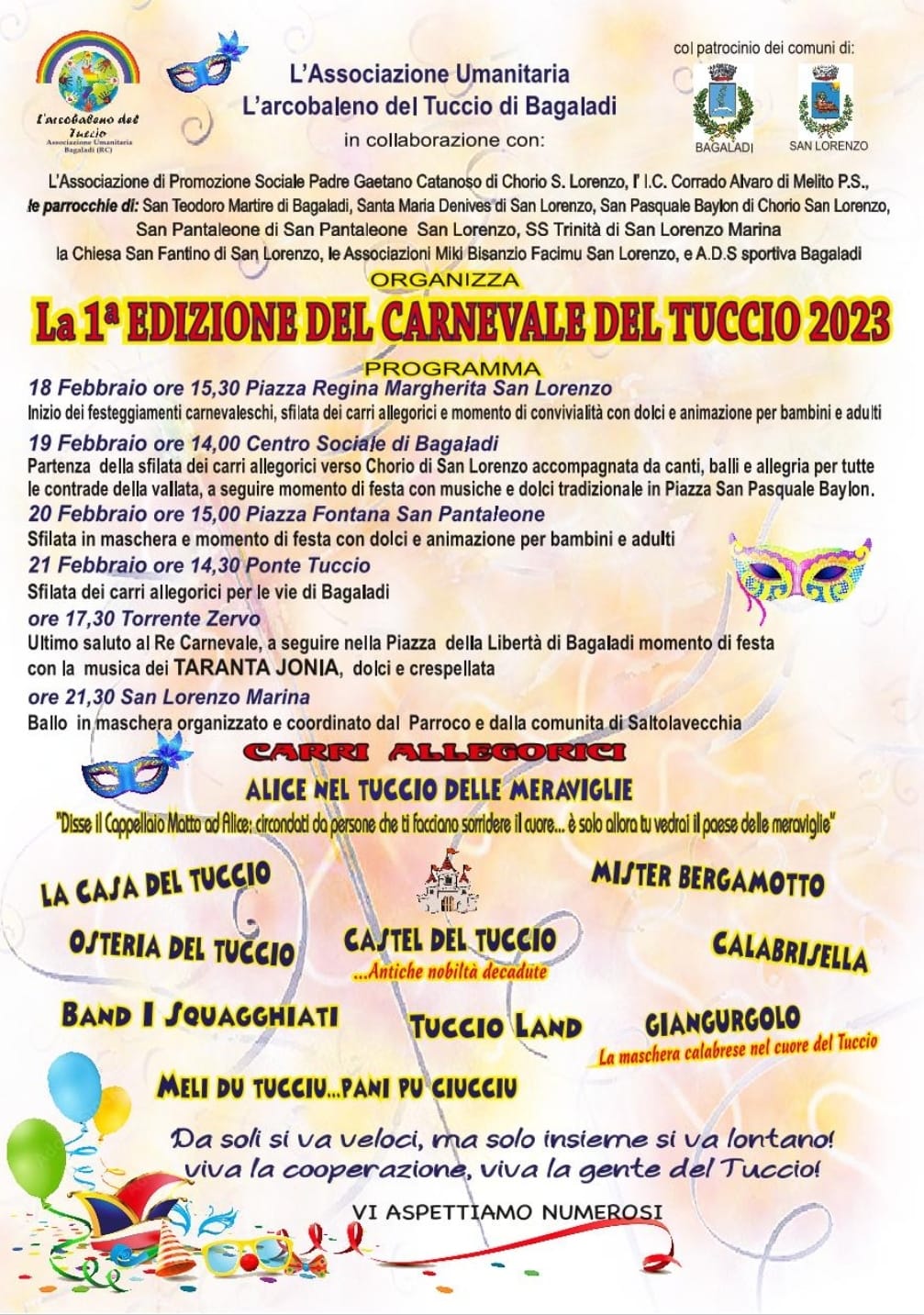 Quattro giorni di festeggiamenti nella Valle Del Tuccio, nel reggino. Tutte le associazioni presenti nei comuni di Bagaladi e San Lorenzo hanno unito le loro forze per organizzare la prima edizione del Carnevale del Tuccio 2023.