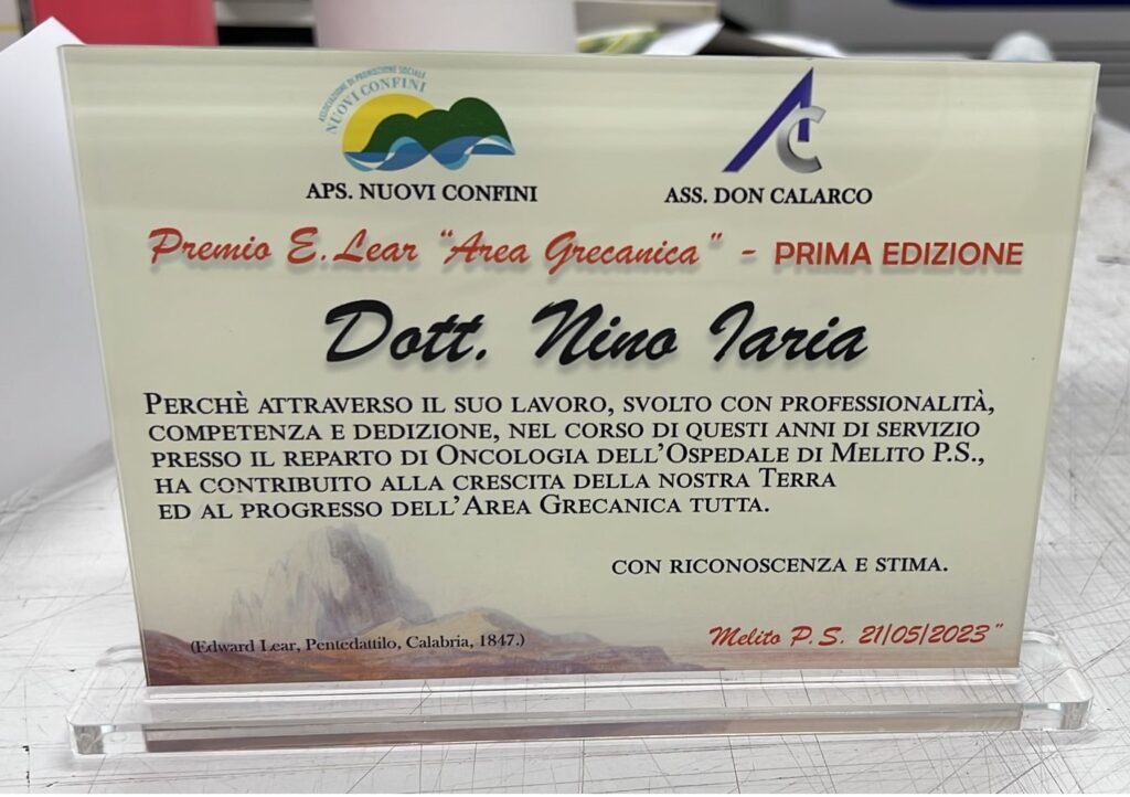 Come prima edizione è stata deciso di consegnare questo riconoscimento al dottore Nino iaria, Primario del Reparto di Oncologia dell’Ospedale di Melito Porto Salvo, commosso ed entusiasta di questo riconoscimento.