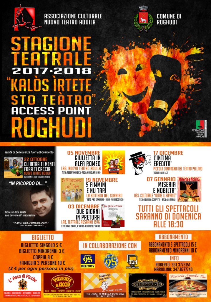 La stagione teatrale a Roghudi 2017/2018 prenderá il via il prossimo 22 ottobre. É stata denominata “Kalòs ìrtete sto Teàtro”.