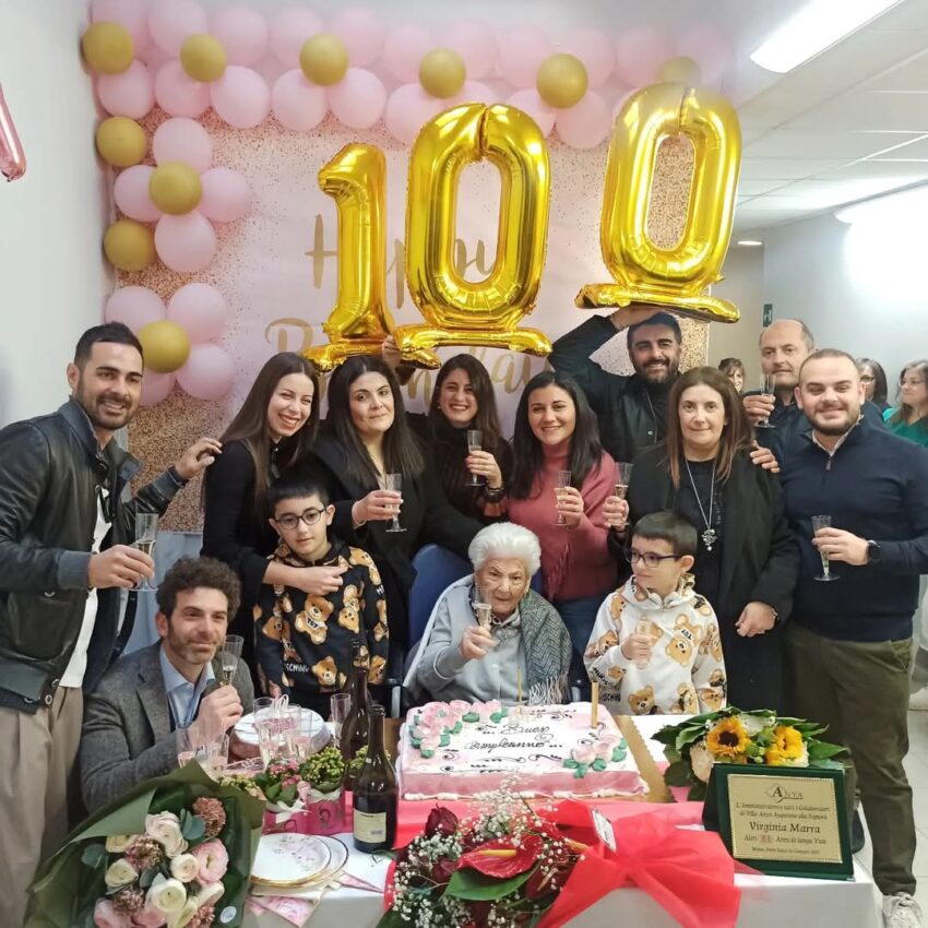 Grande festa per la signora Virginia Marra, casalinga, che ha festeggiato i suoi 100 anni. La signora, madre di 4 figli due maschi e due femmine, é stata festeggiata da parenti ed amici presso la casa di riposo “Villa Anya” di Melito Porto Salvo dove é stata ricoverata da qualche mese dopo una vita trascorsa a Chorio di San Lorenzo.