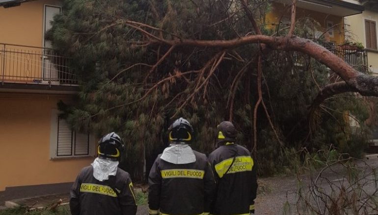 Caduta albero Lamezia. Numerose le segnalazioni giunte alla Sala Operativa del Comando dei Vigili del Fuoco. Attimi di paura per il forte boato della pianta franata sulle mura del palazzo.