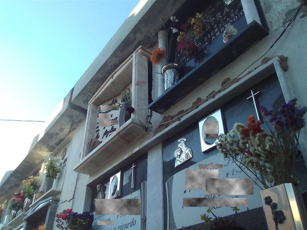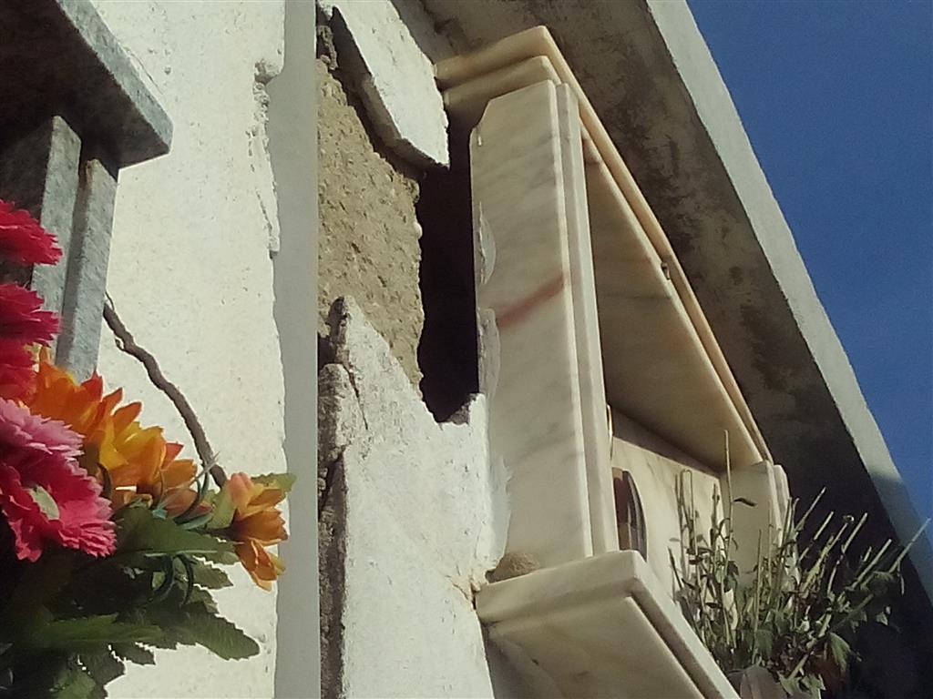 Il materiale precedentemente crollato è stato smaltito recentemente, probabilmente ad opera di privati, all’esterno del muro di recinzione lato monte ove è stata realizzata una discarica di inerti e di altra tipologia di rifiuti cimiteriali e non, che spesso vengono dati alle fiamme. A fine settimana verosimilmente tra sabato e domenica u.s. da una lapide posta al secondo livello si è registrato un ulteriore crollo di una porzione di marmo con annesso porta fiore d’ottone murato sullo stesso. Insistiamo nel ripetere che il cimitero, come previsto dalla legge senza il servizio di custodia non può rimanere aperto notte e giorno. E’ necessario che come più volte richiesto si provveda alla messa a norma del camposanto, in primis disporre un accertamento tecnico per verificare e rimuovere i pericoli imminenti determinati da possibili e probabili crolli di lapidi, tetti e porzioni di cemento da cappelle situate in diverse zone del camposanto.